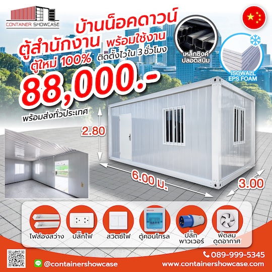คอนเทนเนอร์โชว์เคส เรามุ่งมั่นผลิตสินค้าทีมีคุณภาพ ซื่อสัตย์ ตรงต่อเวลา เพื่อให้เกิดความพึงพอใจกับลูกค้า ด้วยประสบการณ์มากกว่า 15 ปีในธุรกิจตู้คอนเทนเนอร์ เราสัญญาจะพัฒนาสินค้าและบริการด้วยมาตรฐานที่ดียิ่งขึ้นไป